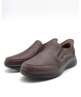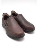 Zapato marrón chocolate sin cordones con elásticos en los laterales de la pala, plantilla memory foam, sistema Slip-ins y suela de goma ligera